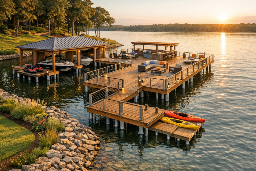 Every shoreline in Noonday TX tells a different story. Some families want a quiet fishing platform, others want a full entertainment hub with a boathouse, party deck, and outdoor kitchen. Our passion is taking that vision and using thoughtful pier construction and boathouse and dock construction to bring it to life.